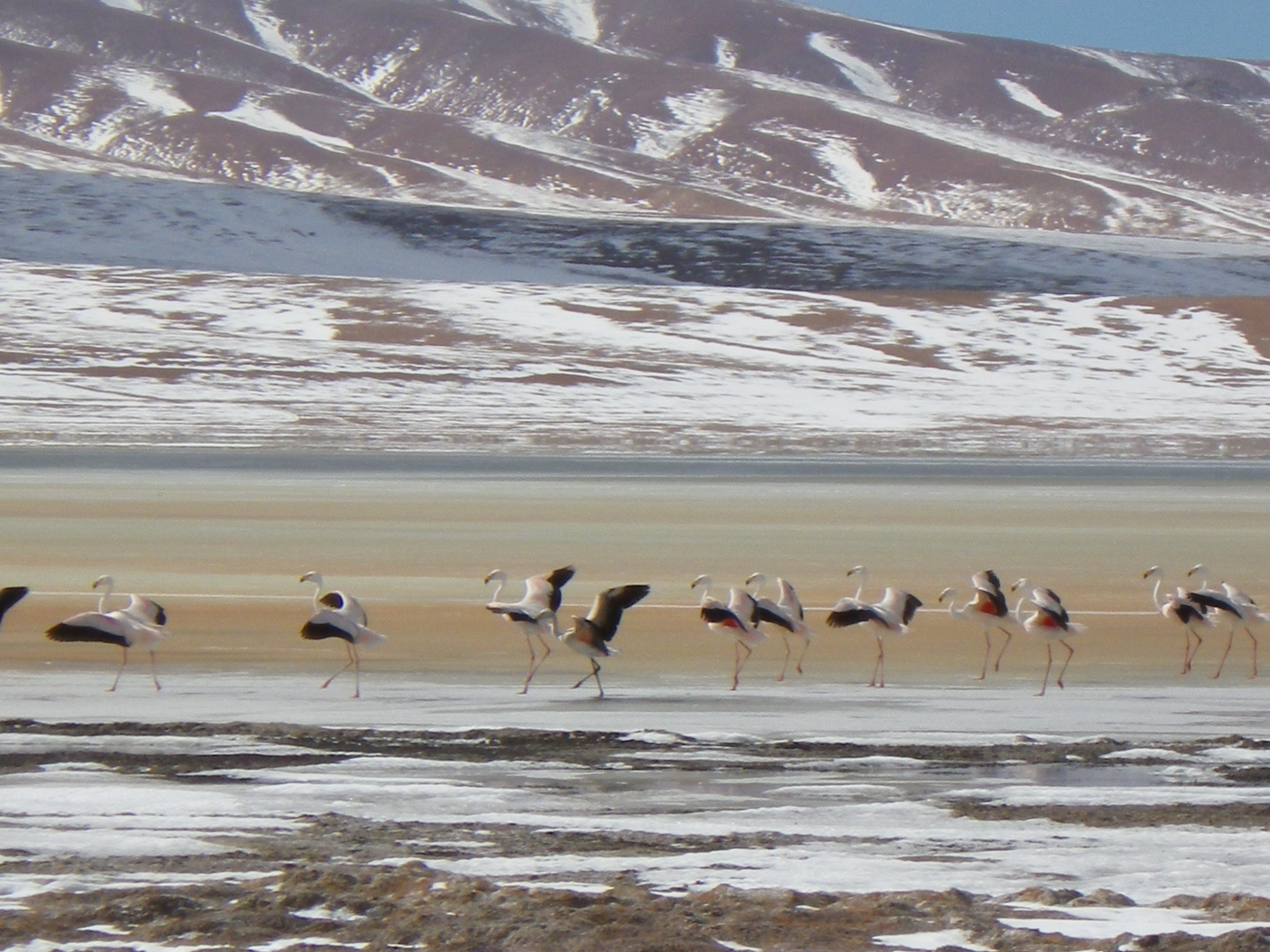 According to Wikipedia, “The Salar was formed as a result of transformations between several prehistoric lakes. It is covered by a few meters of salt crust, which has an extraordinary flatness with the average altitude variations within one meter over the entire area of the Salar. The crust serves as a source of salt and covers a pool of brine, which is exceptionally rich in lithium. It contains 50 to 70% of the world’s lithium reserves, which is in the process of being extracted. The large area, clear skies, and the exceptional flatness of the surface make the Salar an ideal object for calibrating the altimeters of Earth observation satellites.” The area also serves as a major breeding ground for flamingos (Chilean, Andean, and James’). Super cool place.