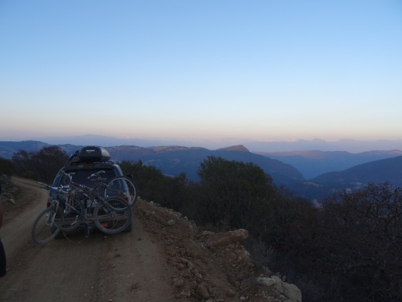 We continued north on the highway (Ruta 135), stopping to have the flat tire repaired, then took a secondary road east to Santiago Apoala, a tiny town (population ~800) along the Ruta Mixteca, another ecotourism route known for its natural beauty and recreational opportunities. The hills were smaller and covered with small trees and shrubs. The soil in some areas was a beautiful dark red. It was cool to be in a landscape so different then where we’d spent most of the day. We found a wild camping spot just off the road above Santiago Apoala and with cold beers in hand, we enjoyed the sunset and thanked our lucky stars that, despite our tire and brake troubles, we’d made it there.
