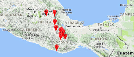 After 18 days exploring the beautiful waterfalls, mountains, and beaches in the states of Campeche, Chiapas, and Oaxaca (see previous post), Mathieu and I continued our road trip through Mexico, spending the next 9 days exploring the interior of the state of Oaxaca and returning to the state of Puebla.