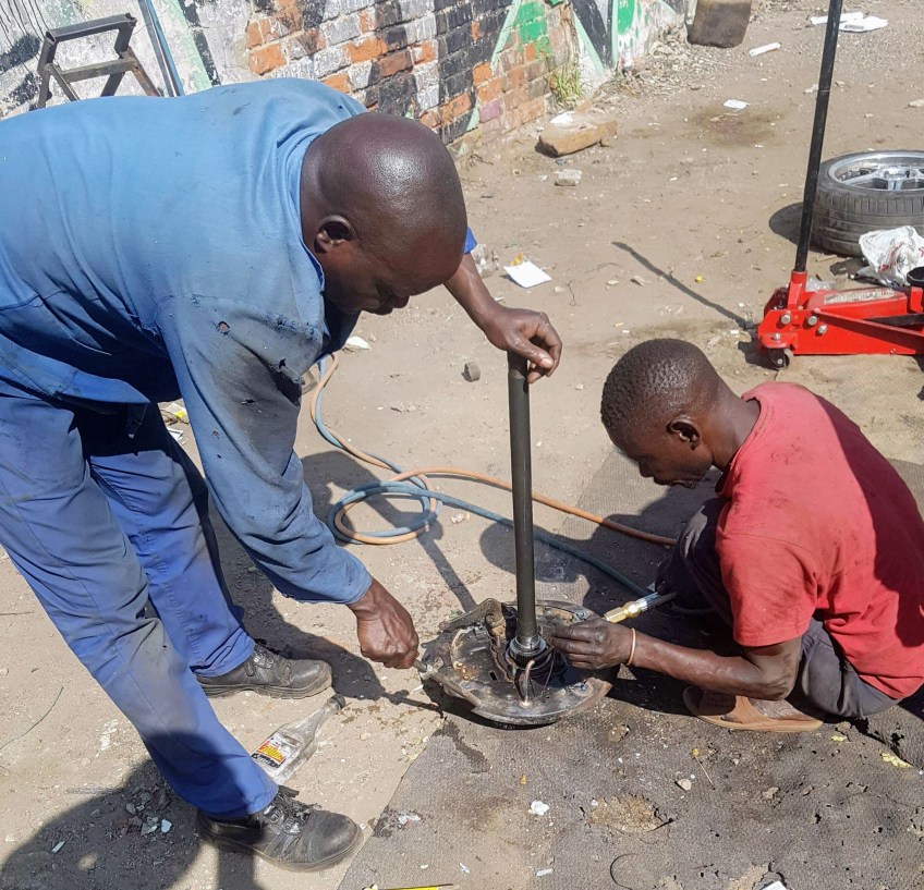 received_979005728970307 Published April 2, 2019 at 2634 × 2539 in This Week in Africa…the bakkie formerly known as Becky (April 2019) Welding the dust cover.