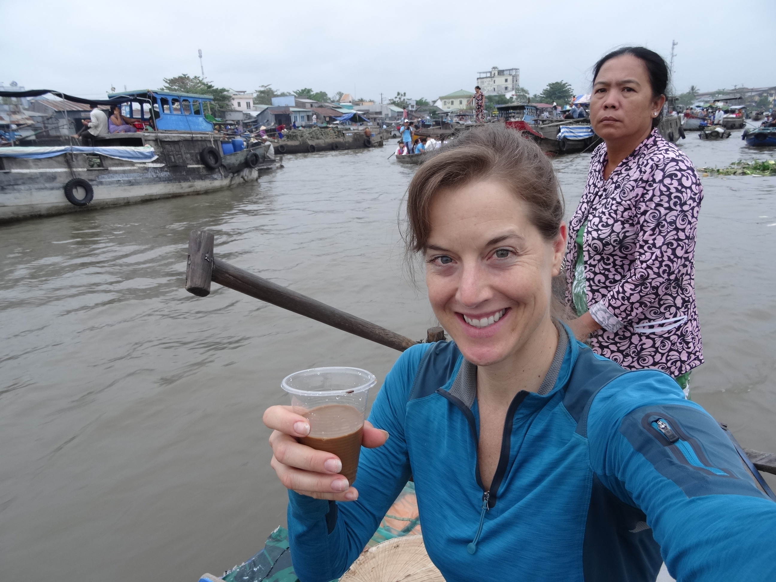 While in Ho Chi Minh City, I also got to visit my friends, Bart and Juliet, an Australian couple I’d met on my Antarctic cruise in March 2015. It was so great to hang out with them and spend a few nights at their cozy flat. And since they’d been living there for the past two years, they took me to their favorite local eateries featuring delicious dishes such as pho (noodle soup), bun (rice vermicelli), banh my (sandwich), and a plethora of fresh seafood sauteed with fresh lemongrass and ginger. It was great to eat these familiar dishes in their country of origin while sitting among locals at tiny plastic tables on tiny plastic chairs. I also tried chè for the first time, a sweet beverage made with items such as mung beans, black-eyed peas, kidney beans, tapioca, jelly (clear or grass), fruit (i.e., longan, mango, durian, lychee, jackfruit), coconut, and coconut cream. Delicious!