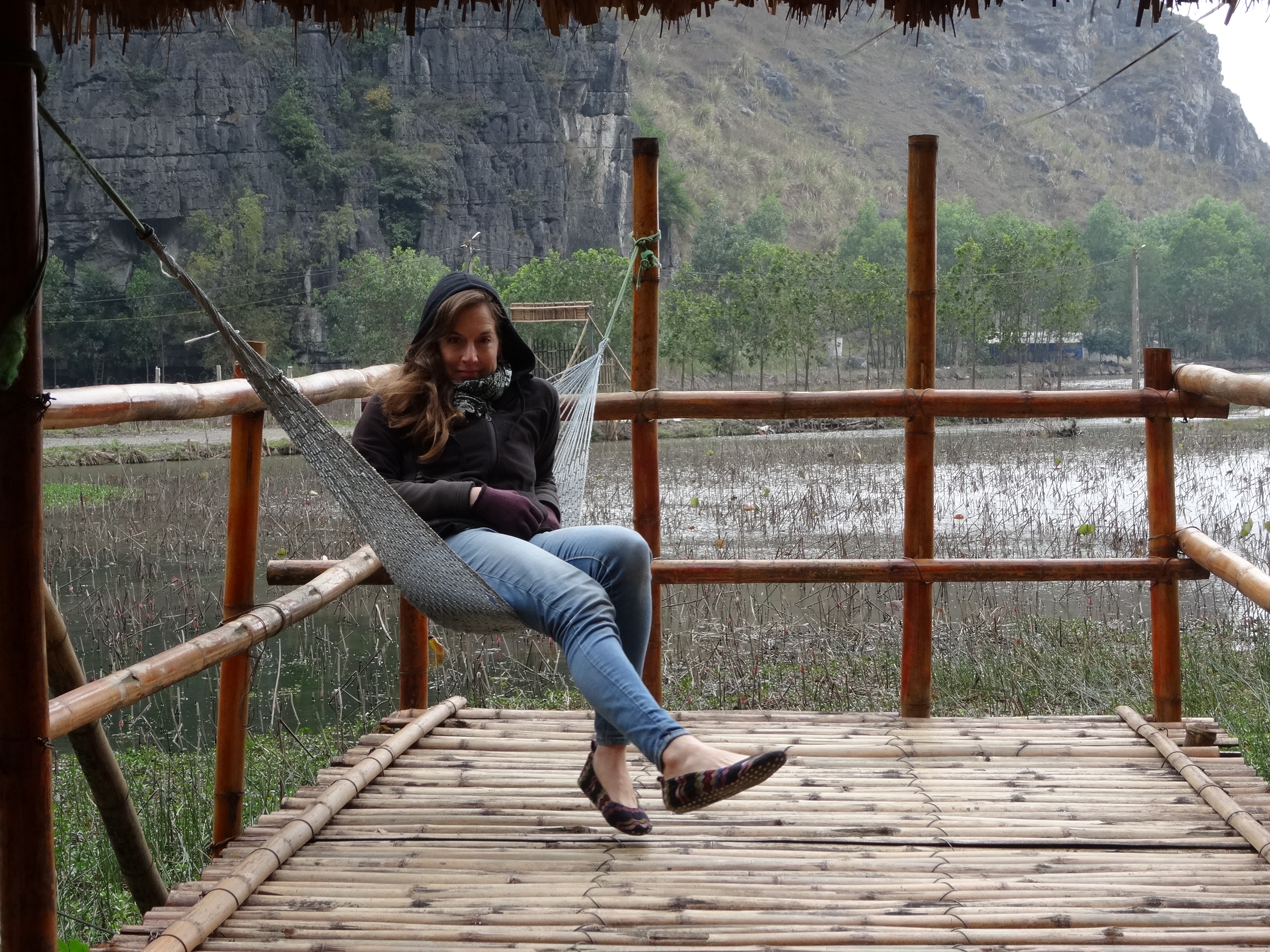After saying farewell to Carla, I took a bus to the small village of Tam Coc. After almost one month in Vietnam staying mostly in hostel dorms (and one high school dorm), I booked a private bungalow at a tiny hotel nestled between rice fields and giant limestone cliffs. While I had to stay bundled up to keep warm in my bamboo-walled bungalow, it was a perfect place to relax and enjoy some personal time. I enjoyed it so much, I ended up staying there for 7 days during which I wrote in my journal, read, sorted pictures, watched movies on my tablet, talked to friends and family back home, and just chilled. A few nights, I joined other hotel guests for dinner, and copious amounts of local rice wine, hosted by the hotel owners and their family, adding to the wonderful, homey feel of the small hotel. While there, I met a few other travelers, including Brett and Laura (UK) who I ended up traveling with for the remainder of my time in Vietnam.