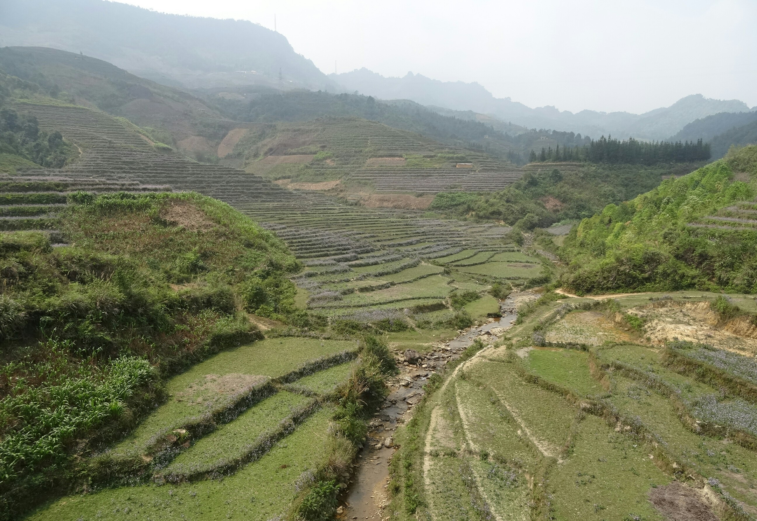 After returning unscathed to Ha Giang, we took a bus to Sapa (population 138,622), also near the Chinese border. While we’d been told it was super touristy, we wanted to see the town for ourselves. During the five days there, we experienced one clear, sunny day during which we enjoyed the view of the large valley below town and the surrounding mountains. The view on that sunny day along with the the plethora of shops and restaurants made Sapa feel like a lovely mountain resort town. Otherwise, it was very cold and the town was enveloped in its notorious thick, wet fog. (It was SF/Pacifica style fog.) In the cold, we bundled up and enjoyed walking around town, window shopping, and eating good food. Even in the dreary fog, the city center appeared vibrant due to the multitudes of ethnic minority women and children in their traditional colorful clothes selling their handicrafts. Sapa and the nearby border town of Lao Cai (94,192), where we spent our final night in Vietnam, were good last stops before leaving the country. Next designation: China.